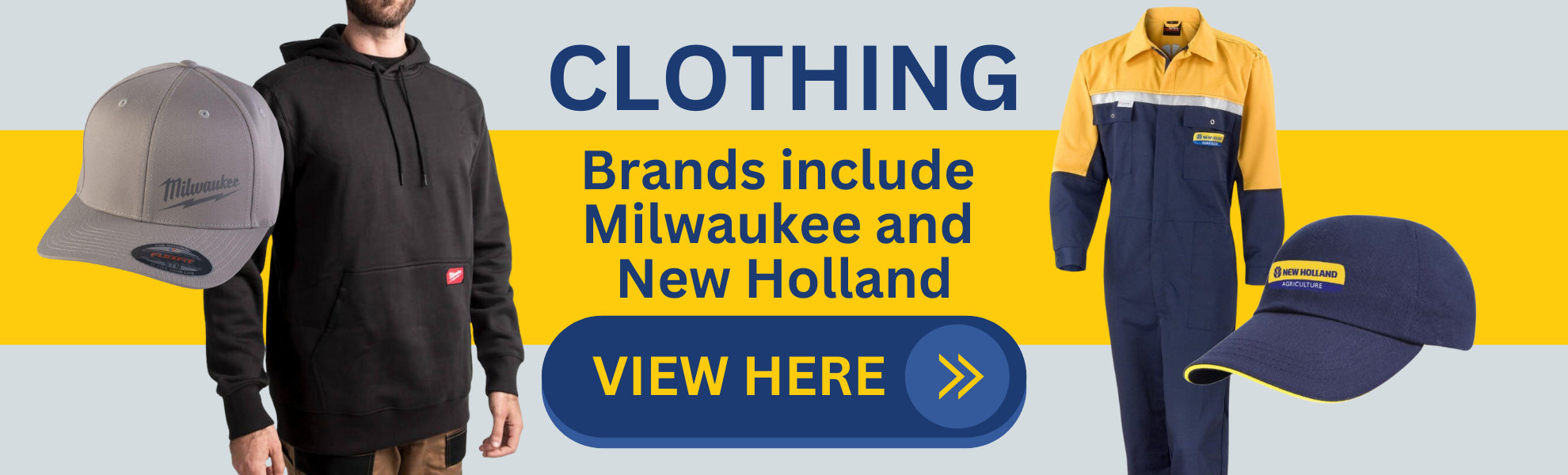 Welcome to our online store where you can purchase a wide range of items including clothing, footwear, power tools, hand tools, toys, lighting and much more. All from fantastic brands such as New Holland, Milwaukee, Buckler, Redback, Lazer Lighting, Draper, Kramp to name a few.